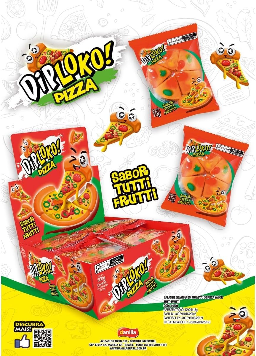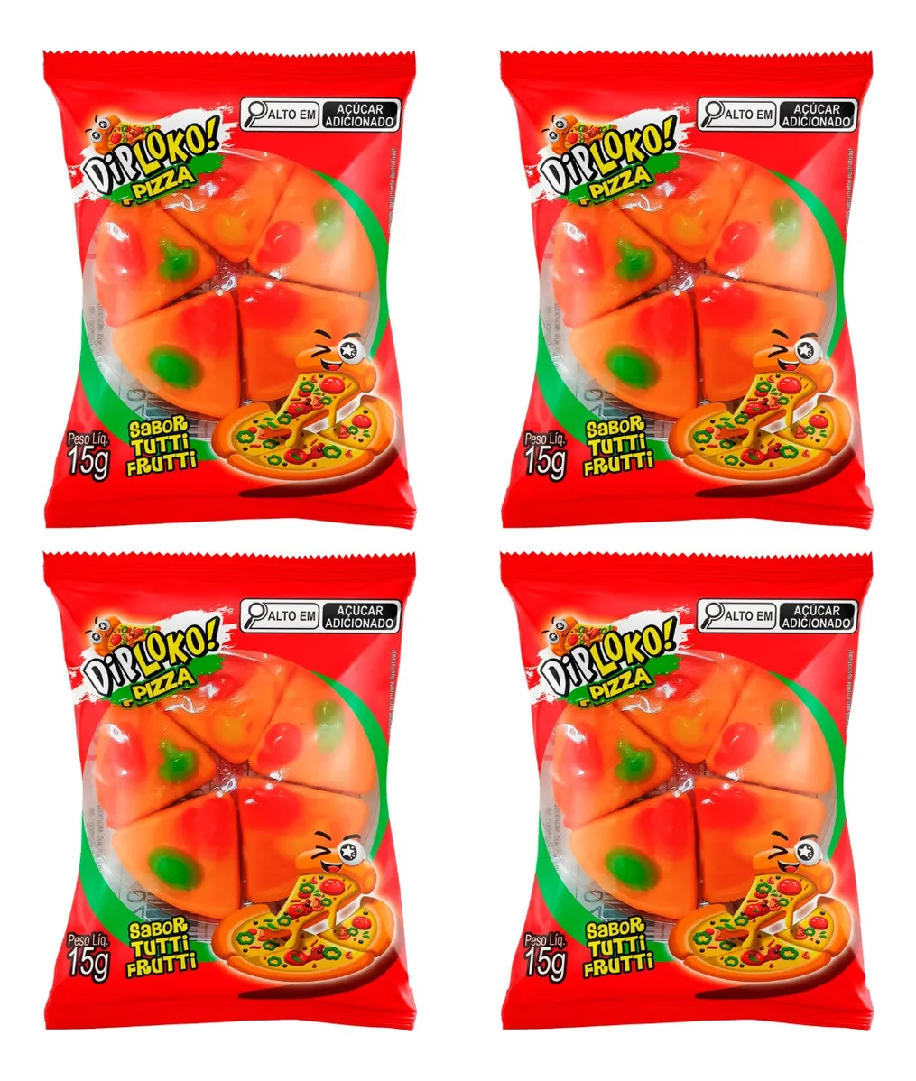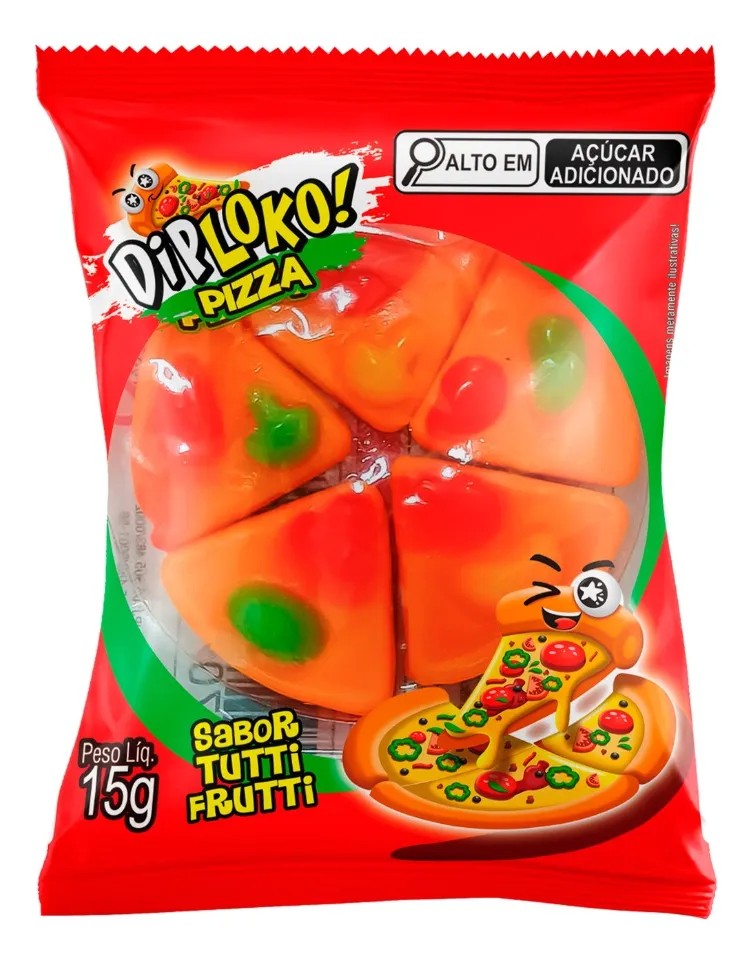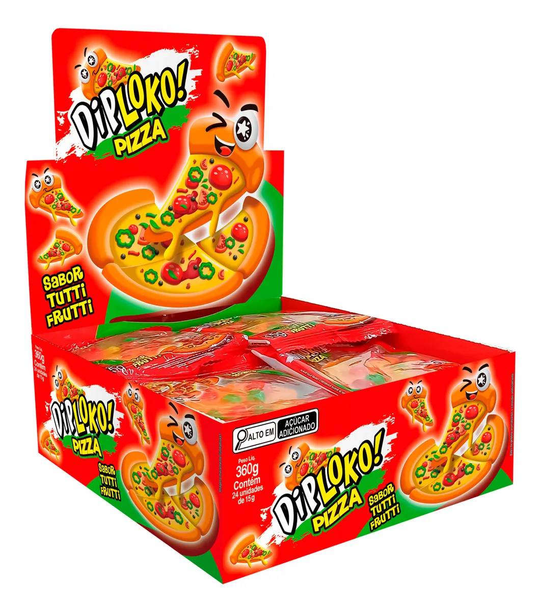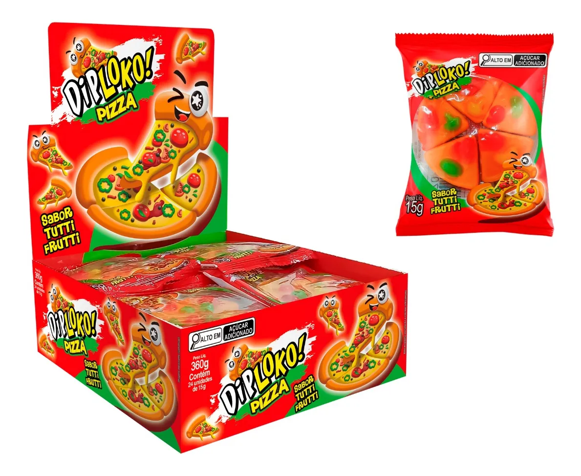 Bala de Gelatina Fast Food Pizza Sabor Tutti Frutti Com 24 Un