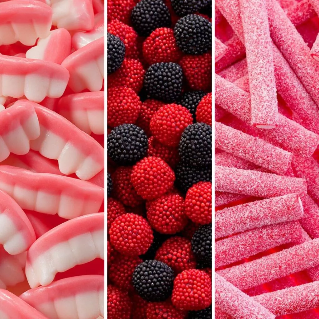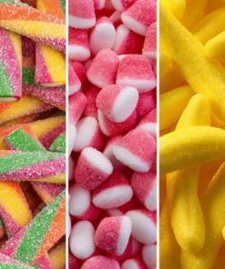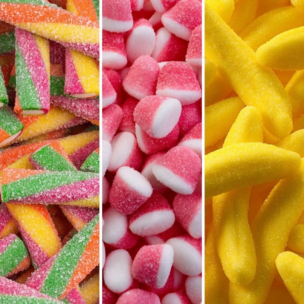 Kit contendo 5 Display com 12 pacotes com 15g de produto em cada sendo:Mini Dentaduras, Mini Minhocas, Mini Bananas, Mini Amoras, Mini Ursinhos, Mini minhocas azedinhas, Tubes Morango, Tubes Morango Azedinho, Tubes Tutti Frutti Azedinho, Tubes Twistter Azedinho.