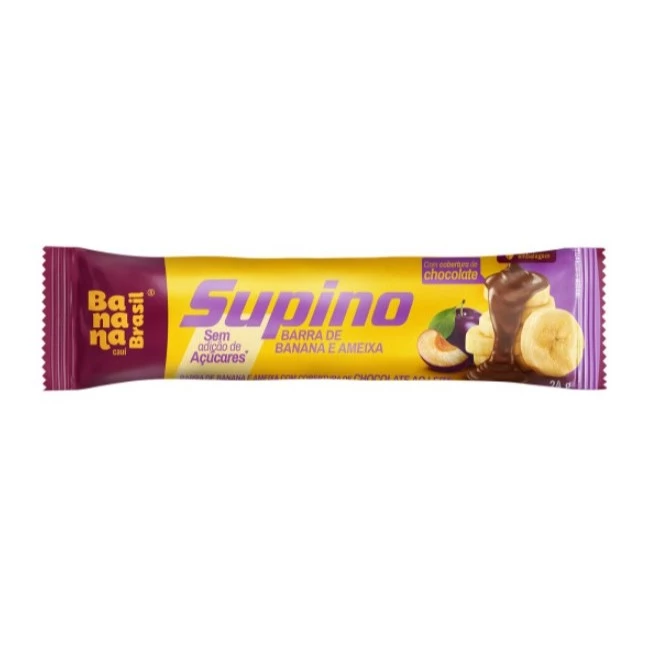 A linha Supino reúne os melhores ingredientes em opções nutritivas, práticas e saborosas. A combinação de banana-passa com uma deliciosa cobertura de chocolate promove saciedade, energia e sensação de bem-estar, já que a banana e o cacau contêm em sua composição o aminoácido essencial triptofano, que ajuda o organismo a produzir serotonina, um neurotransmissor que melhora o humor.