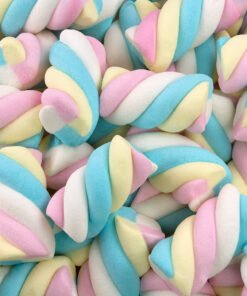 Marshmallow.Torção Fini, macios e saborosos, possuem formato torcido nas cores rosa, azul, amarelo e branco, com sabor de baunilha. Pacote com 80g, é perfeito para usar em decorações de mesas de festas e pratos de confeitaria, tornando tudo mais colorido, com um toque único e especial! Disponível também em: 80g.