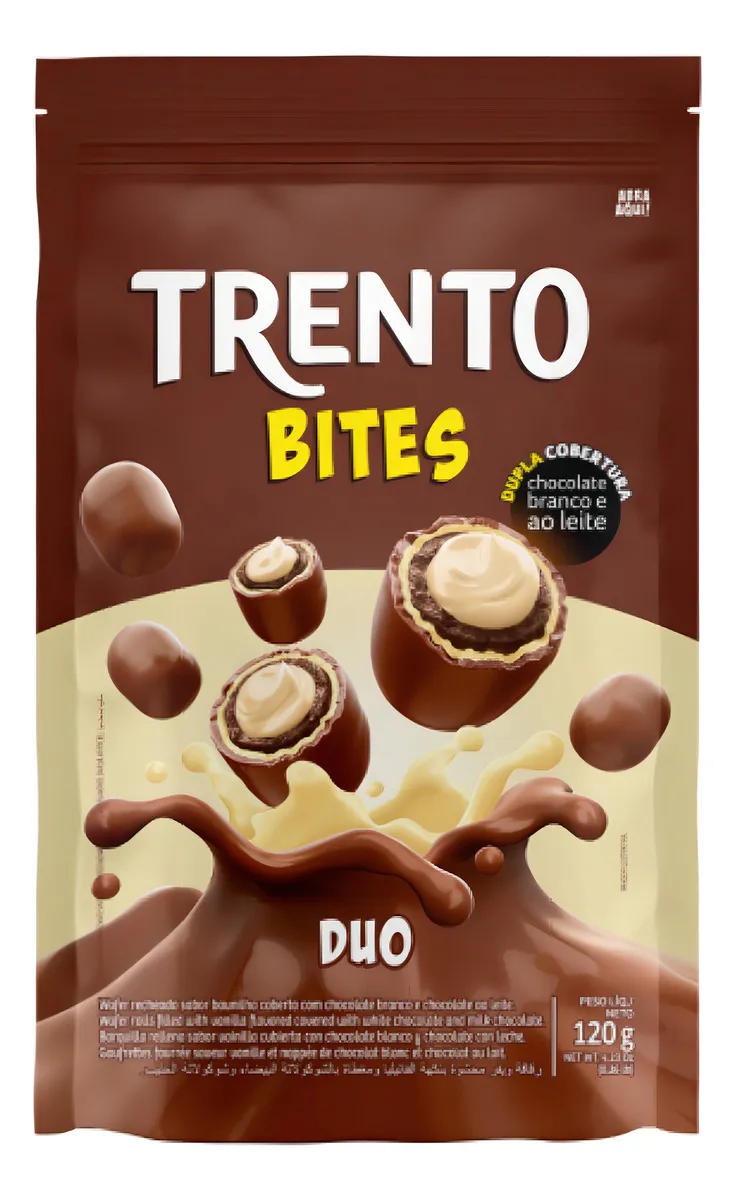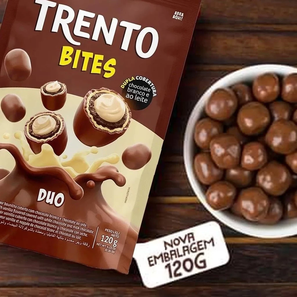 Muito mais sabor em cada mordida! Trento Bites Branco-Dark é um wafer recheado sabor chocolate meio amargo coberto com chocolate branco. Todo o sabor de Trento em deliciosas pequenas porções! Experimente!