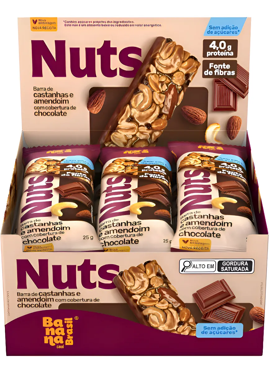 Nuts Castanhas e Chocolate Caixa com 12un de 25g.